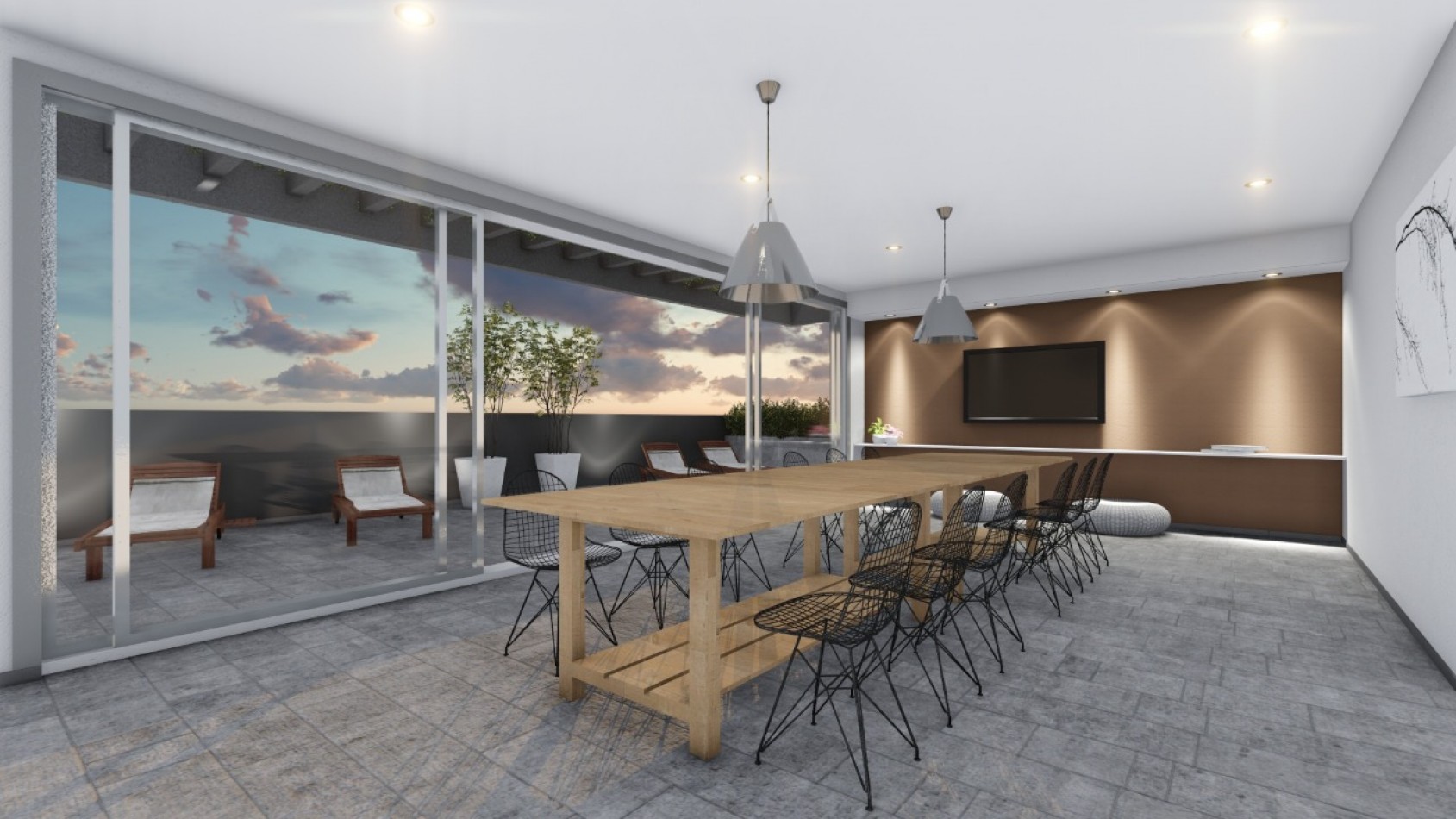 Salón de usos múltiples y espacio de coworking.