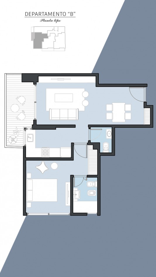 Departamentos de 2 ambientes (todos en suite): Amplios de hasta 56 m², con toilette y baño en suite.