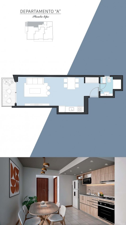 Monoambientes divisibles: Aptos profesionales de 36 m² al frente con balcón.