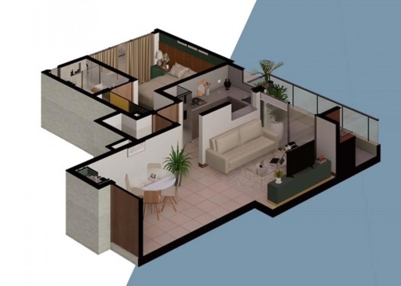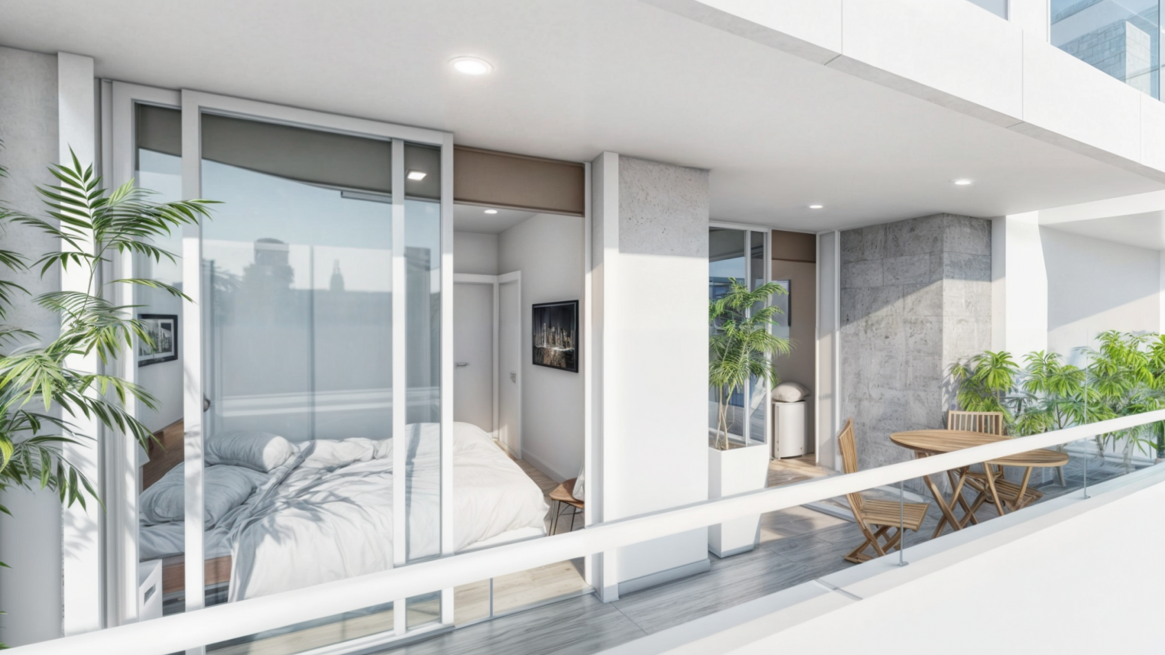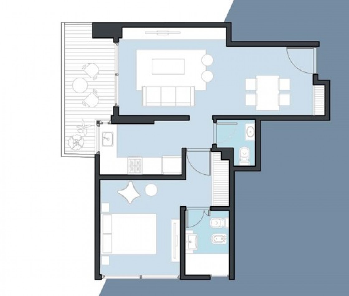 Departamentos de 2 ambientes (todos en suite): Amplios de hasta 56 m², con toilette y baño en suite.