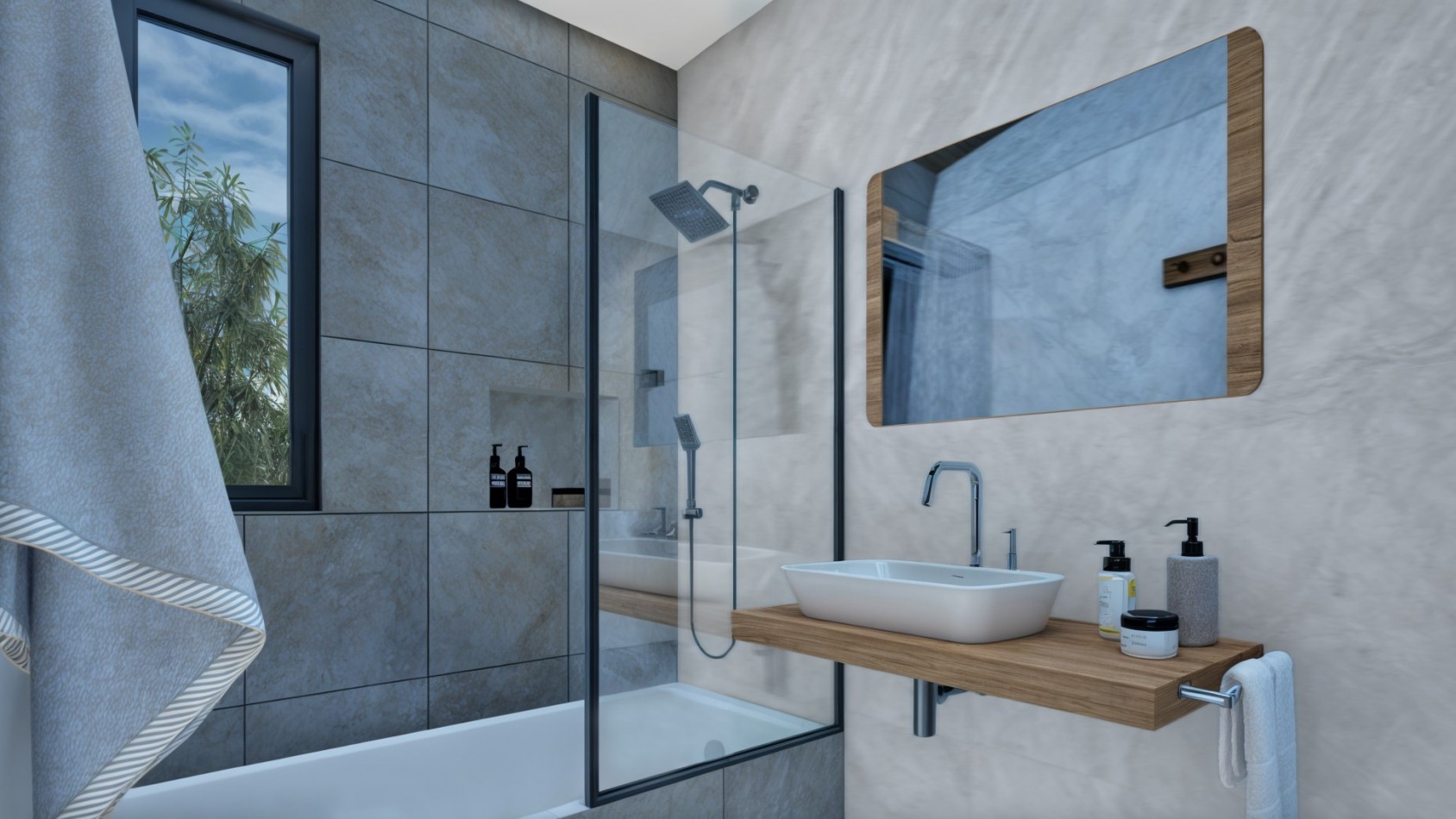 Terraza y solarium con duchas.
